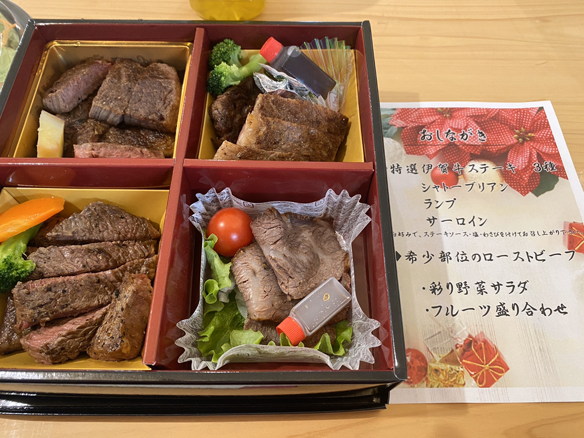 社長のご厚意で特注の伊賀牛4種盛りお弁当を頂きました~!