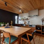 LDKの天井は板張りで、空間全体に暖かく、落ち着く雰囲気に…